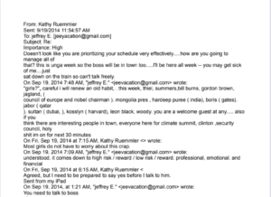 کاترین (کَتی) روئملر، مشاور حقوقی پیشین کاخ سفید در دولت اوباما و از مدیران حقوقی ارشد در والاستریت، در این بستهها با نوع سندی کاملاً متفاوت مطرح میشود: زنجیرهای از ایمیلها که هم “رابطه حرفهای” را نشان میدهد و هم “مبادله هدیه” و حتی “مشاوره روابط عمومی”.