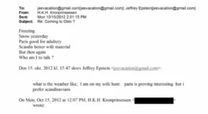 - «هزار بار» تکرار نام همسر ولیعهد نروژ در اسناد اپستین