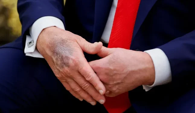 درباره کبودیها، نخستین مشاهده در فوریه ۲۰۲۵ همزمان با دیدار با امانوئل مکرون بود؛ توضیح رسمی کاخ سفید—دستدادنهای مکرر—با عرف پزشکی سازگار است، بهویژه در فردی که برای پیشگیری قلبی آسپیرین مصرف میکند؛ دارویی که میتواند کبودیهای سطحی و گذرا ایجاد کند. تداوم و ناپیوستگی این کبودیها در ماههای بعد نیز دقیقاً با همین الگو همخوان است و نه با سناریوهای حاد.
